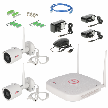 - zawartość zestawu: rejestrator, 2 kamery WI‑FI 2MP (Full HD 1080p), myszka do obsługi, przepusty kablowe