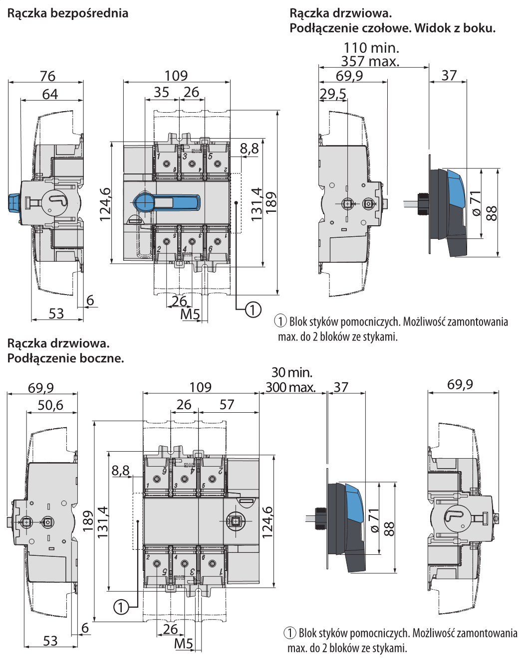 - Położenie rączki odwzorowuje jednoznacznie położenie styków głównych.