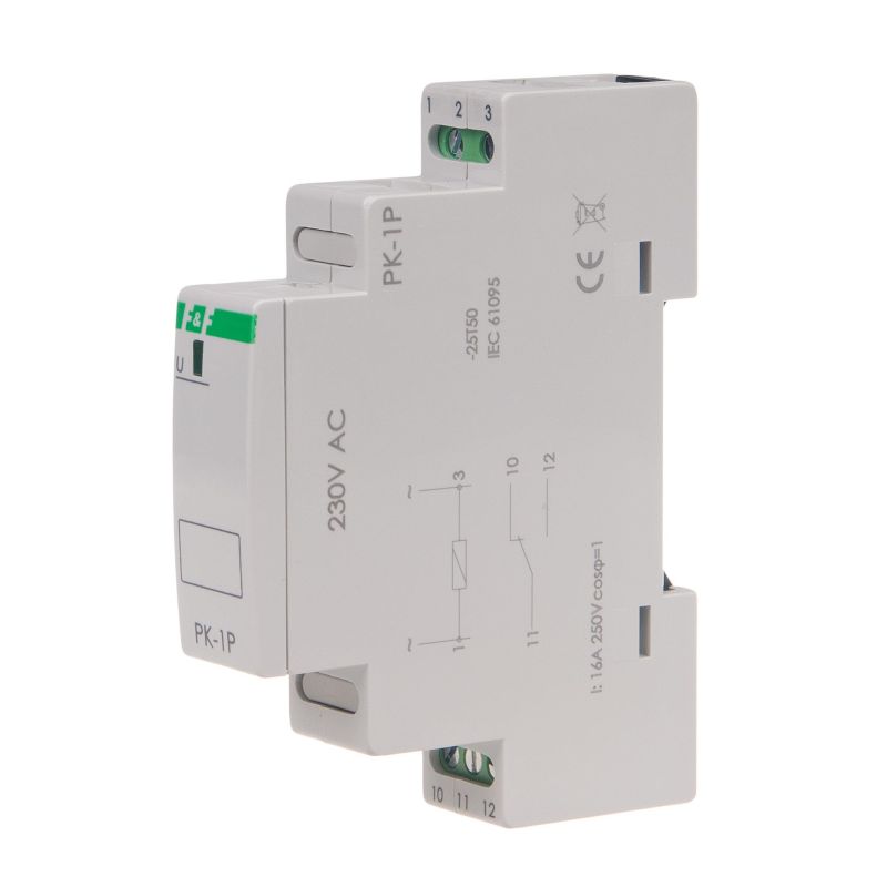 PK-1P 230 V | 1 x NO/NC | 16 A | 230 V AC | 25 mA | 1 | 2,5 mm² |