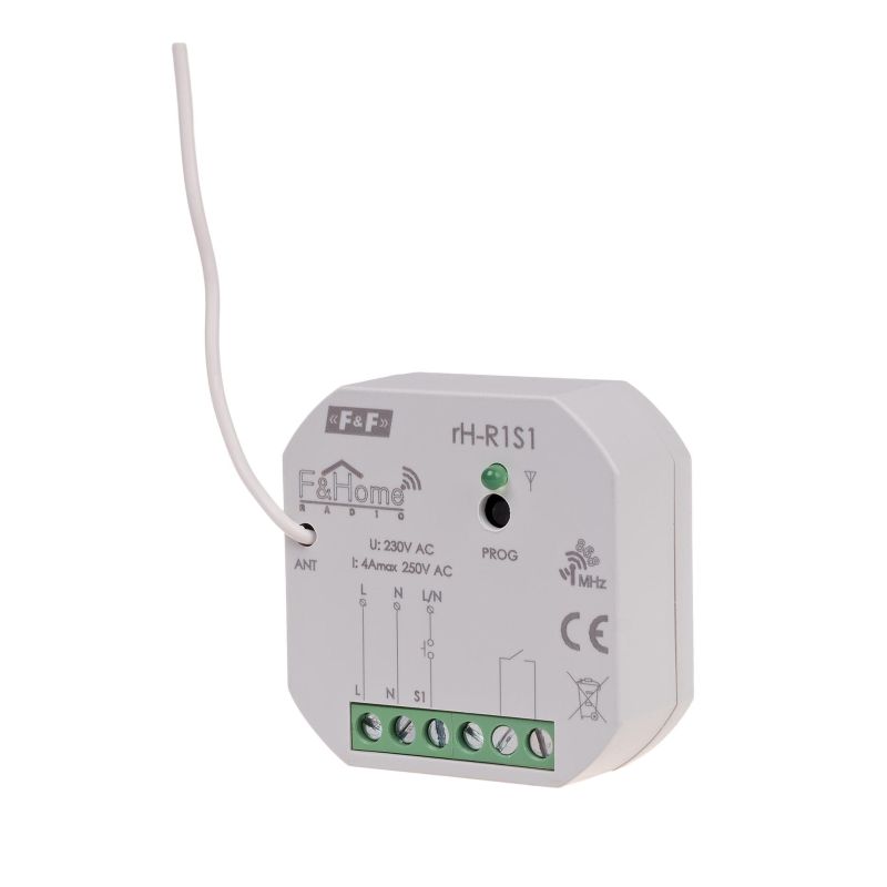 rH-R1S1i jest uniwersalnym rozwiązaniem przeznaczonym między innymi do sterowania wentylatorem, oświetleniem, do wyłączania gniazda elektrycznego.