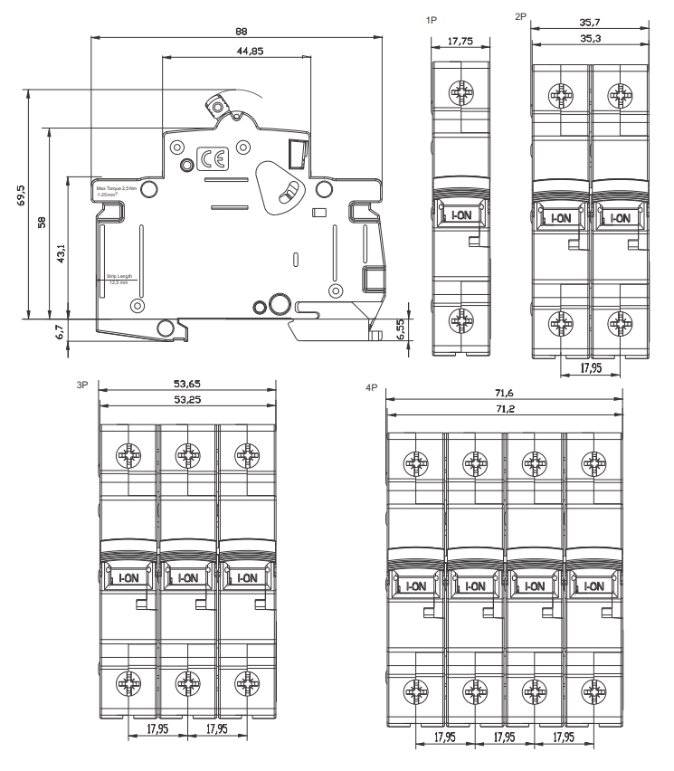 - Każdy wyłącznik oznaczony kodem EAN. Znakowanie naniesione laserowo.