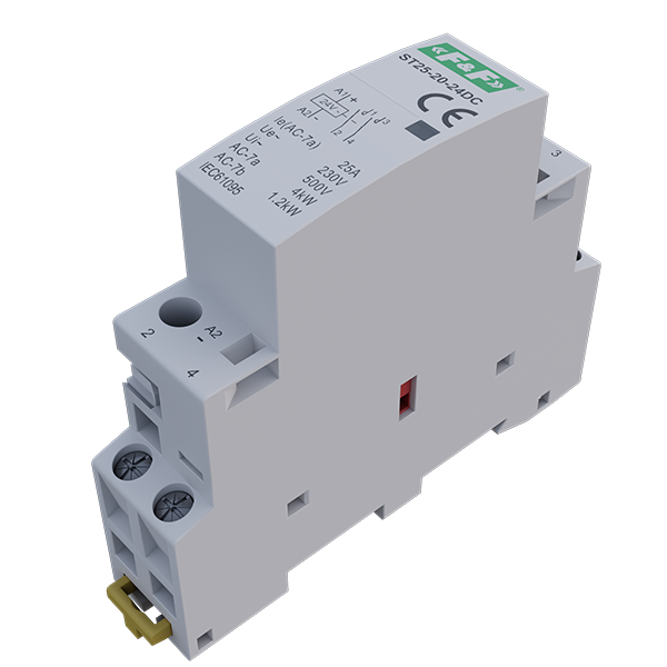 Podanie napięcia zasilania na cewkę stycznika modułowego spowoduje przełączenie styku. Stan załączenia stycznika modułowego jest sygnalizowany czerwonym znacznikiem w okienku. Po zaniku napięcia zasilania styki powracają do pierwotnej pozycji.