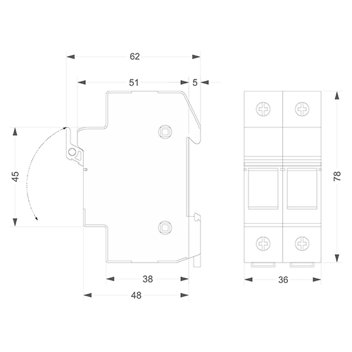 Rozłącznik bezpiecznikowy przeznaczony do wkładek bezpiecznikowych typu 10x38. Do zastosowania w obwodach prądu stałego, dedykowany do systemów fotowoltaicznych.