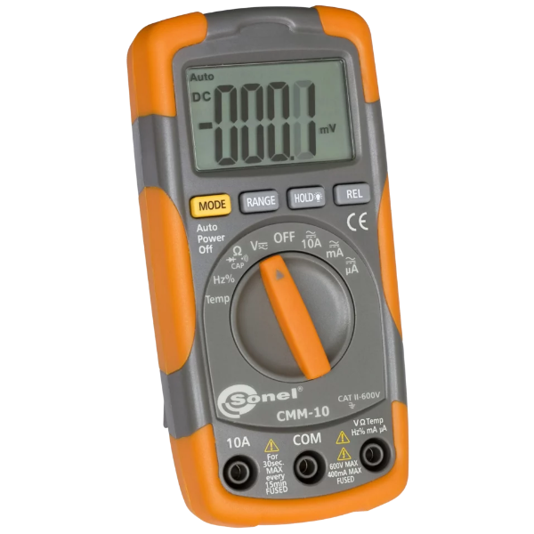 Prosty i niezawodny multimetr cyfrowy Sonel CMM-10 przeznaczony do badania podstawowych parametrów takich jak napięcie stałe i przemienne, prąd AC i DC, częstotliwość, pojemność, cykl roboczy oraz temperatura. Jest to niewielkie urządzenie o szerokim zakresie zastosowań dedykowane elektrykom mieszkaniowym oraz komercyjnym. Dzięki możliwości pomiaru temperatury, jego zalety docenią również technicy ogrzewania oraz klimatyzacji. Łącząc w sobie kieszonkowe wymiary, intuicyjną obsługę oraz szereg praktycznych funkcji z wyjątkowo korzystną ceną, przyrząd spełni oczekiwania początkujących, jak i zaawansowanych użytkowników z branży elektrycznej i nie tylko. Duże cyfry na podświetlanym wyświetlaczu gwarantują błyskawiczne odczytanie wyniku nawet w obszarach niedostatecznie oświetlonych. Dzięki temu przyrząd zapewnia niezawodność bez względu na warunki pracy. To idealne rozwiązanie dla każdego elektryka, montera i konserwatora.