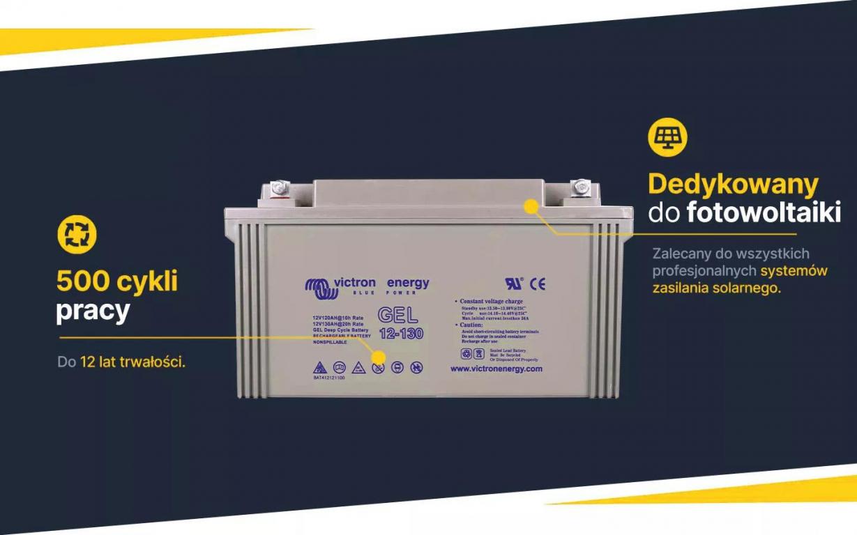 Wszystkie akumulatory żelowe Victron Energy to najwyższa światowa jakość dedykowana do profesjonalnych systemów solarnych pracujących wyspowo. Akumulatory VE zapewniają bardzo wysoką sprawność w połączeniu z trwałością do 12 lat. Holenderska firma Victron Energy, znana ze swojego profesjonalnego podejścia do systemów energii odnawialnej, oferuje produkty o klasę wyższa od powszechnie dostępnych akumulatorów żelowych. Decydując się na zakup tej serii produktów wybieracie Państwo stabilność oraz bezproblemową pracę na lata. Akumulatory żelowe cechują się wysoką wydajnością przy małym prądzie rozładowania. W takiej sytuacji mogą oddać większy ładunek niż mają nominalnie zgromadzony. Akumulatory Victron Energy GEL zalecamy do wszstkich profesjonalnych systemów zasilania solarnego.