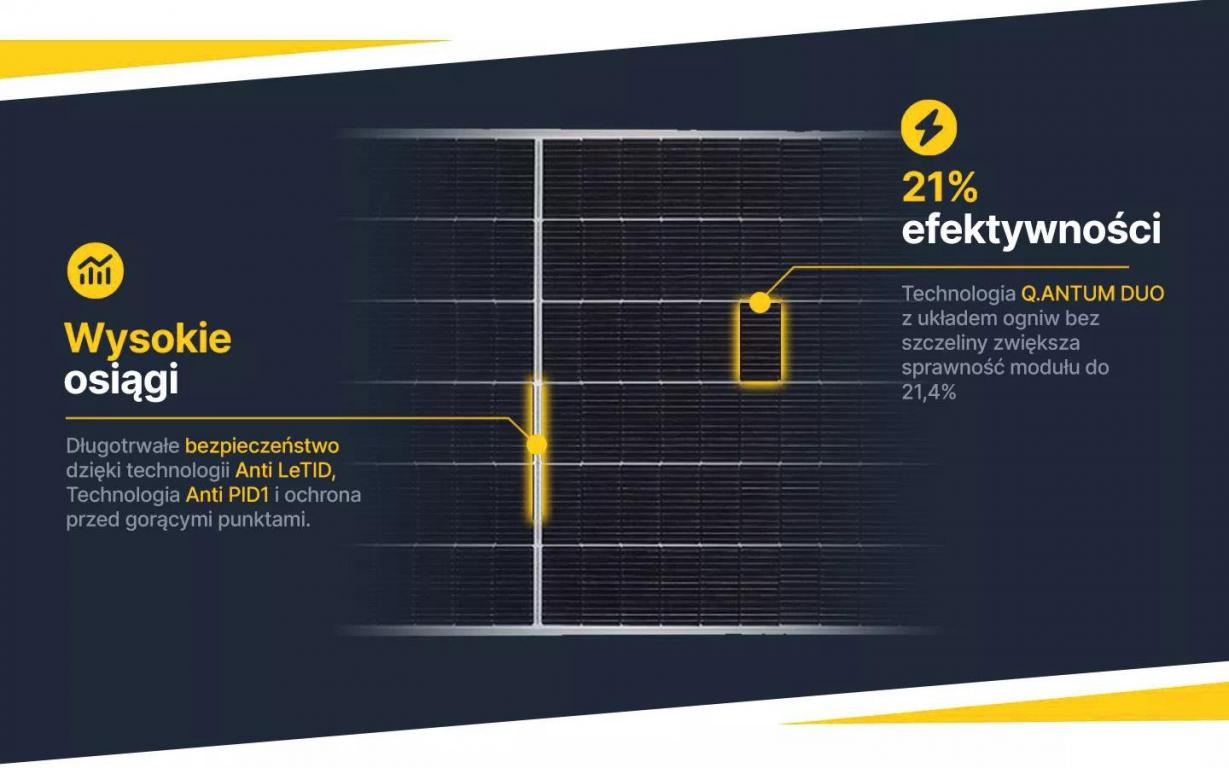 Dzięki opatentowanej technologii Q.ANTUM i zoptymalizowanemu połączeniu ogniw ze znacznie mniejszą liczbą szczelin, moduł ten zapewnia optymalną wydajność i uzysk. Samo zmniejszenie odległości między ogniwami słonecznymi Q.ANTUM poprawia wydajność nawet o 21,4%.
