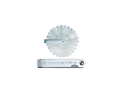 Szczelinomierze King Tony 26 sztuk. Rozmiar blaszki 1/2' x 3', rozmiary 0.0015', 0.002', 0.0025', 0.003', 0.004', 0.005', 0.006', 0.007', 0.008', 0.009', 0.010', 0.011', 0.012', 0.013', 0.014', 0.015', 0.016', 0.017', 0.018', 0.019', 0.020', 0.022', 0.023', 0.024', 0.025'.'''