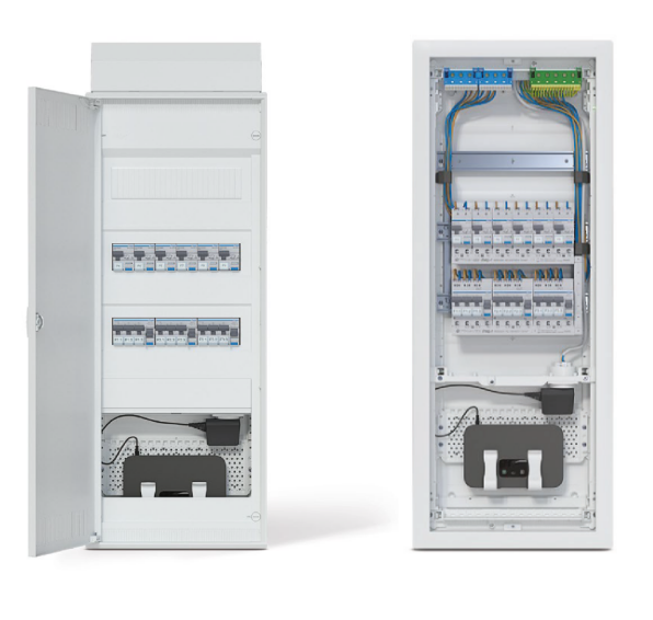 Rozdzielnica elektryczna i multimedialna w jednej obudowie.