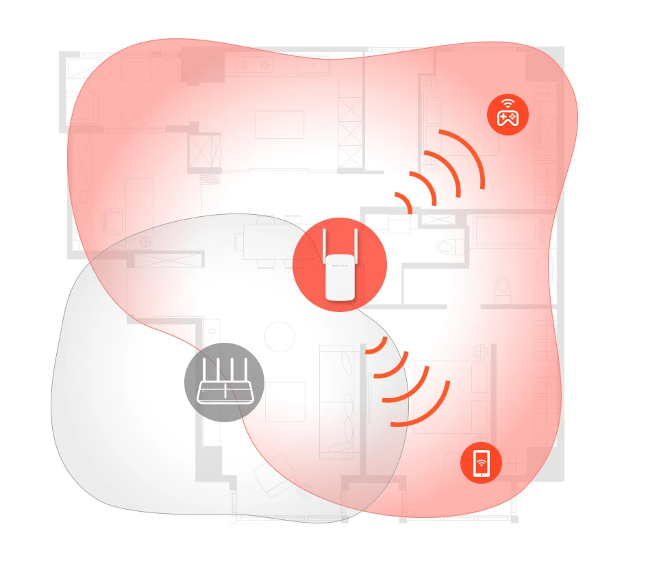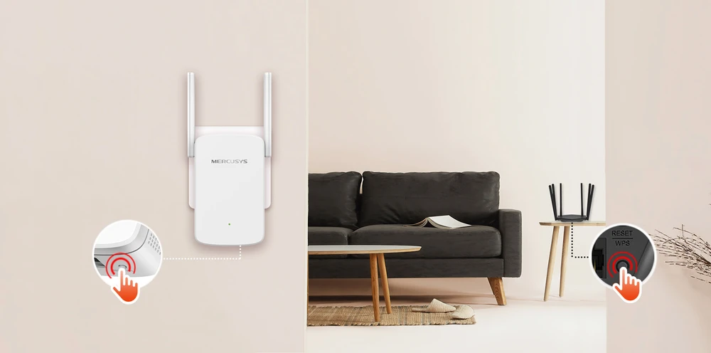 Naciśnij przycisk WPS na routerze i przycisk WPS na wzmacniaczu, aby w kilka sekund zwiększyć zasięg Wi-Fi.