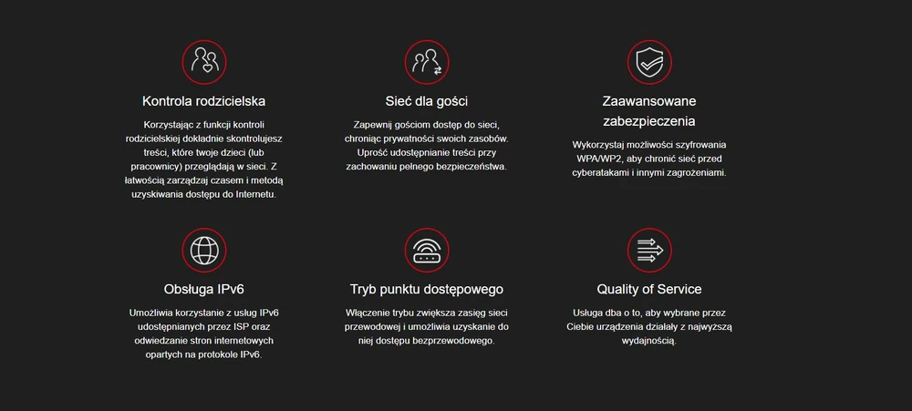 - 4 anteny zewnętrzne o dużym zysku – korzystaj z silnego sygnału sieci Wi-Fi w każdym zakątku swojego domu