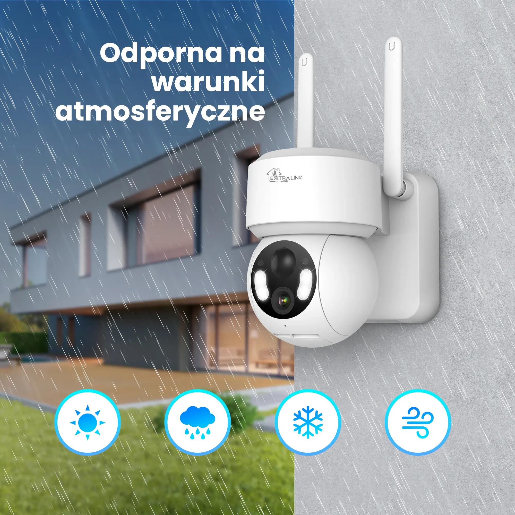- Pełna łączność bezprzewodowa: Dzięki WiFi 2,4GHz z dwoma zewnętrznymi antenami, kamera działa bez kabli, oferując łatwość instalacji i elastyczność w wyborze miejsca montażu
