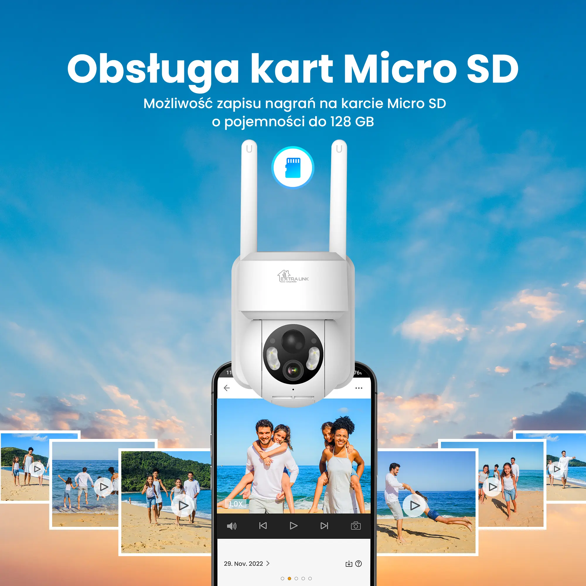- Obsługa kart Micro SD: Możliwość zapisu nagrań na karcie Micro SD o pojemności do 128 GB