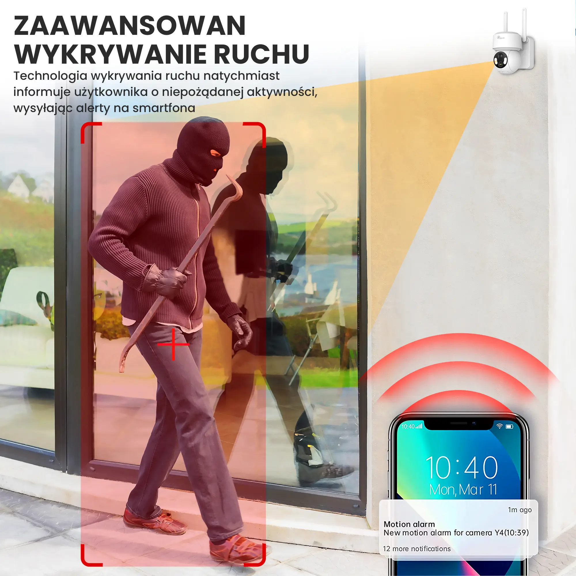 - Zaawansowane wykrywanie ruchu: Technologia wykrywania ruchu natychmiast informuje użytkownika o niepożądanej aktywności, wysyłając alerty na smartfona