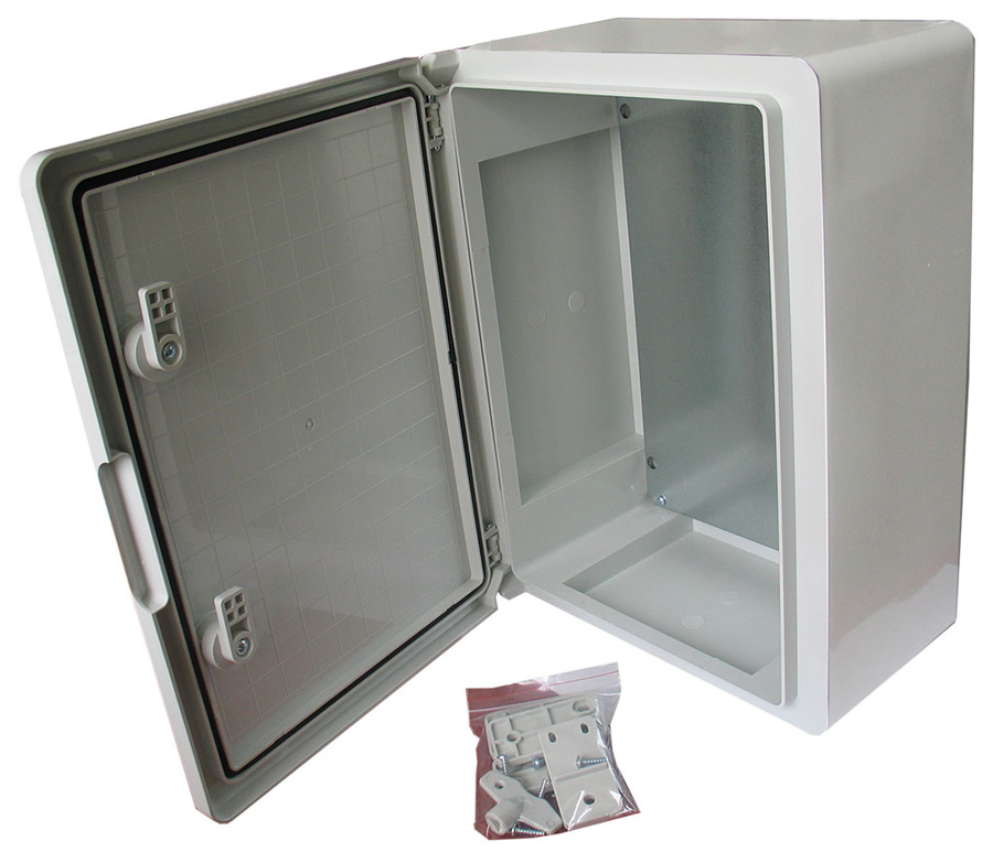 Zestaw zawiera 1 zamek z tworzywa sztucznego, płytę montażową galwanizowaną, 4 uchwyty z tworzywa sztucznego do mocowania szafy oraz wkręty do ich przykręcenia.