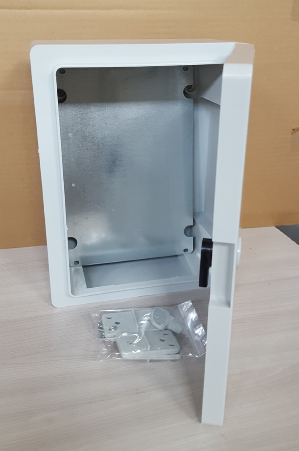 Zestaw zawiera 2 zamki z tworzywa sztucznego, płytę montażową galwanizowaną, 4 uchwyty z tworzywa sztucznego do mocowania szafy oraz wkręty do ich przykręcenia.