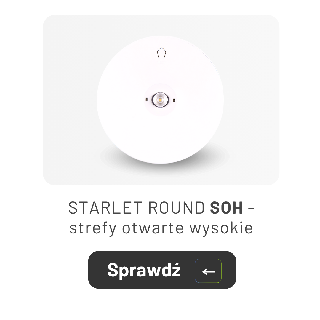 STARLET ROUND Oprawa oświetlenia ewakuacyjnego - STARLET ROUND to nowoczesna oprawa awaryjna o wysokiej wydajności i mocy. Do zastosowania w biurach, na korytarzach, budynkach użyteczności...