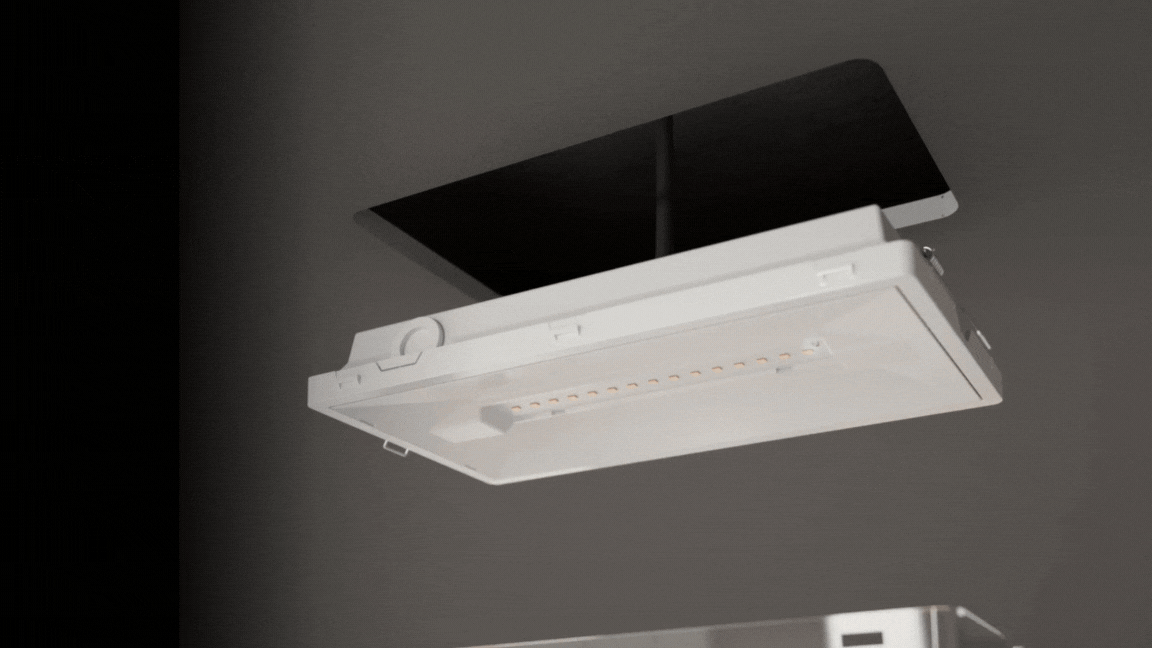 Zestaw do montażu podtynkowego umożliwia wpuszczaną instalację oprawy oświetlenia awaryjnego w suficie.