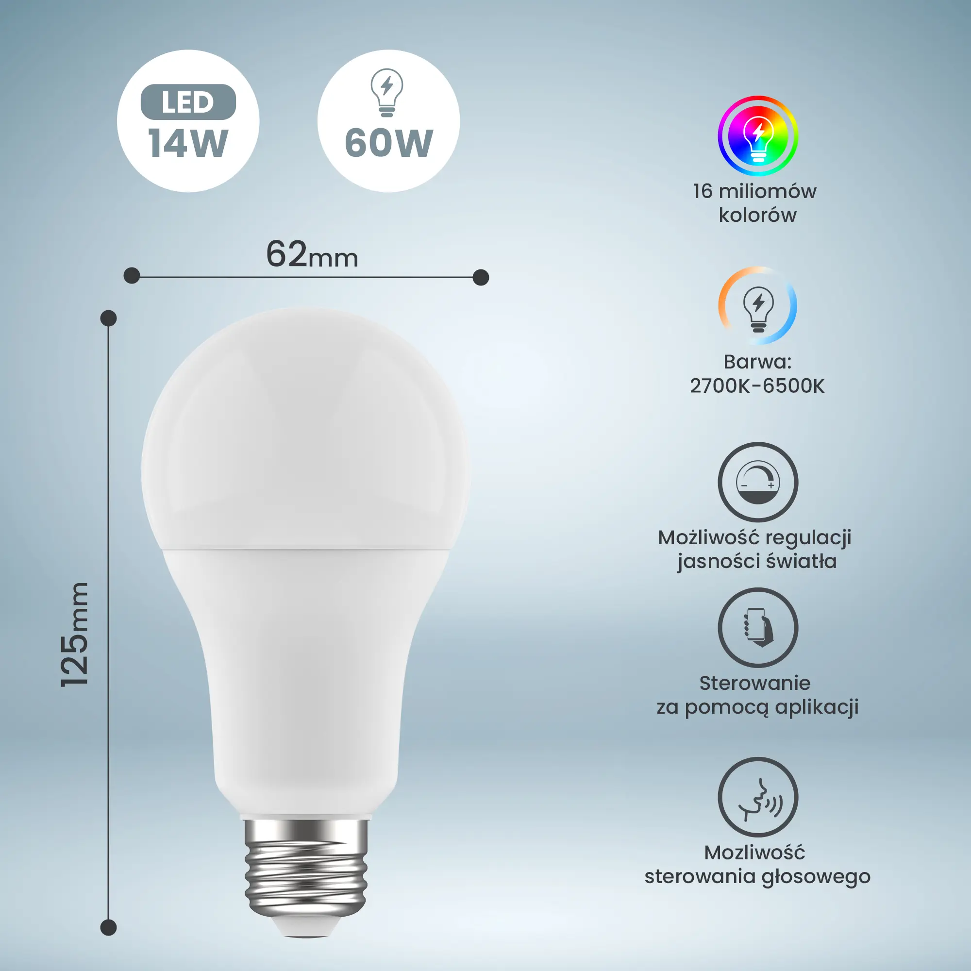 Rozświetl swoje wnętrze dzięki Extralink Smartlife E27 A70 – nowoczesnej żarówce LED, która łączy wygodę, funkcjonalność i energooszczędność. Możliwość zmiany barwy światła od ciepłej do chłodnej (2700K-6500K WiFi) pozwoli Ci dopasować oświetlenie do każdej chwili i nastroju. Dzięki inteligentnym funkcjom sterowania z poziomu smartfona, Twoje codzienne życie stanie się łatwiejsze i bardziej komfortowe.