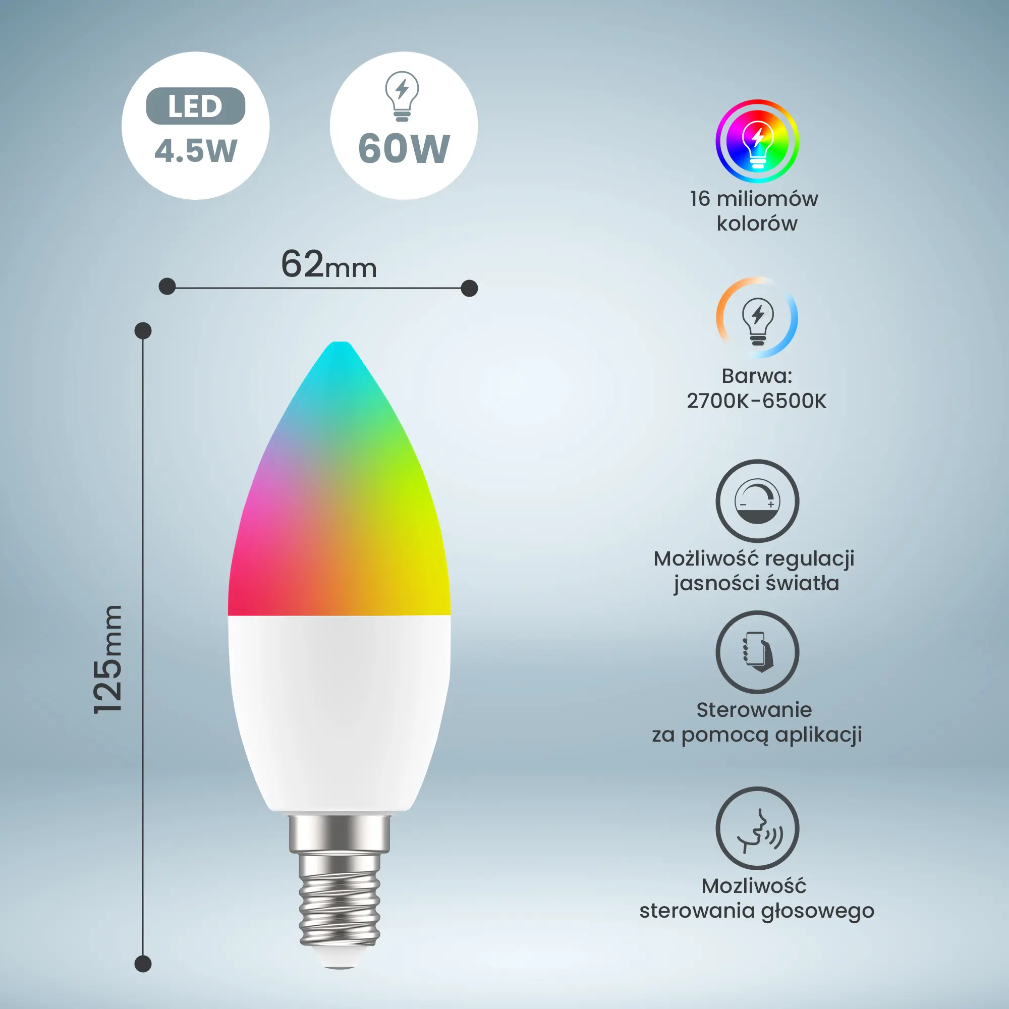 Poznaj Extralink Smartlife | Żarówkę LED E14 C37 2700-6500K WiFi 220-240V – idealne rozwiązanie do każdego pomieszczenia. Oferuje regulację barwy światła oraz inteligentne sterowanie, zapewniając wygodę, oszczędność i nowoczesny design. Ten produkt to połączenie funkcjonalności i technologii, które pozwoli Ci kontrolować oświetlenie za pomocą smartfona – prosto i bez wysiłku.
