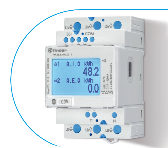 - Wyświetla całościowe lub częściowe (resetowalne) zużycie: V, A, PF, kW, kVA, kvar, Hz, THD V, THD A, przesunięcie fazowe i kierunek przepływu energii