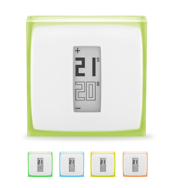 Skorzystaj z jednej z czterech kolorowych nakładek samoprzylepnych dostępnych w zestawie, aby Termostat lepiej pasował do wystroju Twojego domu.