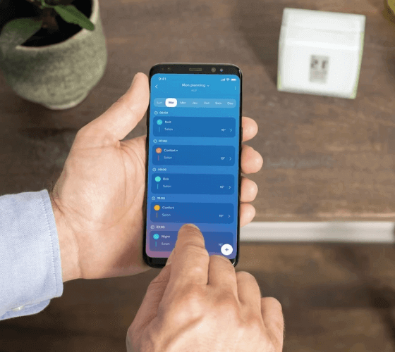 Odpowiedz na 5 krótkich pytań, a Termostat Netatmo utworzy harmonogram ogrzewania, który dopasuje się do Twojego stulu życia. Wychodzisz po 9 i wracasz po 17? Planujesz wyjazd? Nie marnuj energii na ogrzanie pomieszczeń kiedy nie ma Cię w domu. Twórz swój indywidulany harmonogram.