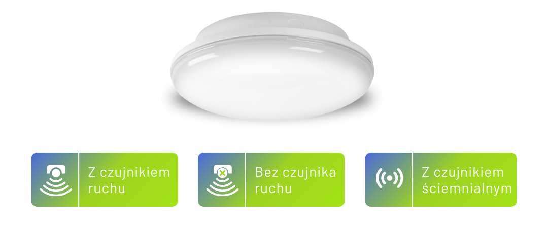 Oprawy mogą być wykonane bez czujnika ruchu, z czujnikiem ruchu on-off lub z czujnikiem ściemnialnym