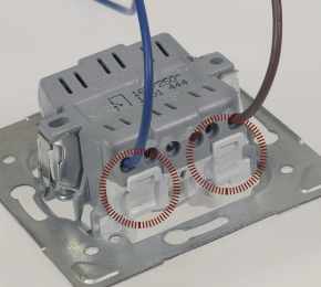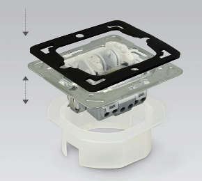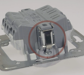 Samopowrotne pazurki wyposażone są w nierdzewne elementy sprężynujące i wydatnie ułatwiają montaż modułu łącznika w puszce instalacyjnej
