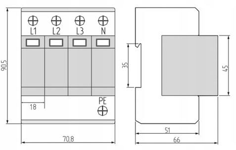 Ochronnik przeciwprzepięciowy 4-polowy, 3-fazowy klasa B+C, do montażu na szynę TH35