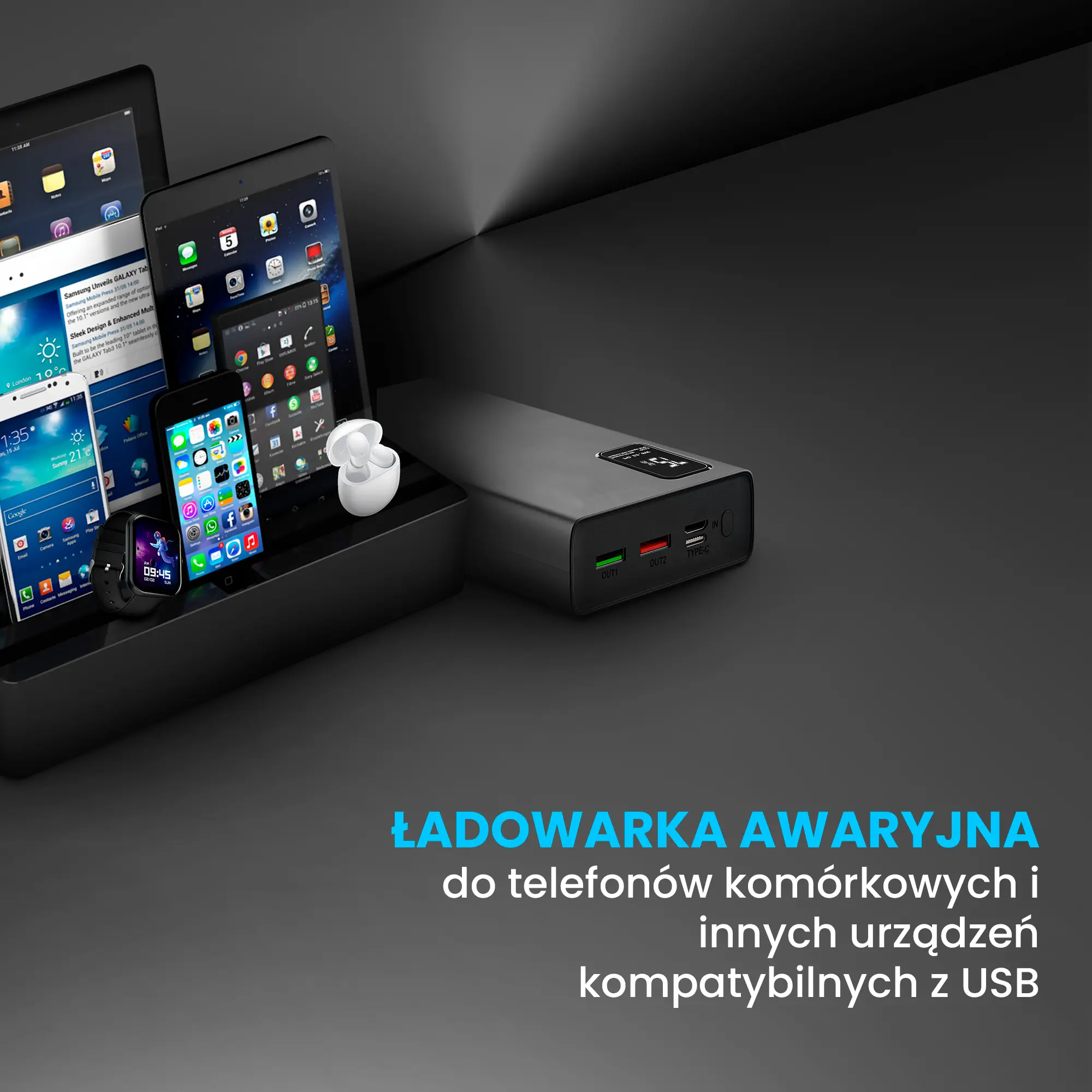 Power bank Extralink EPB-068 jest wyposażony w pojemność 20000 mAh, co pozwala na kilkukrotne naładowanie smartfona lub tabletu. Dzięki szybkiemu ładowaniu 22.5W Fast Charge cały proces trwa bardzo krótko.