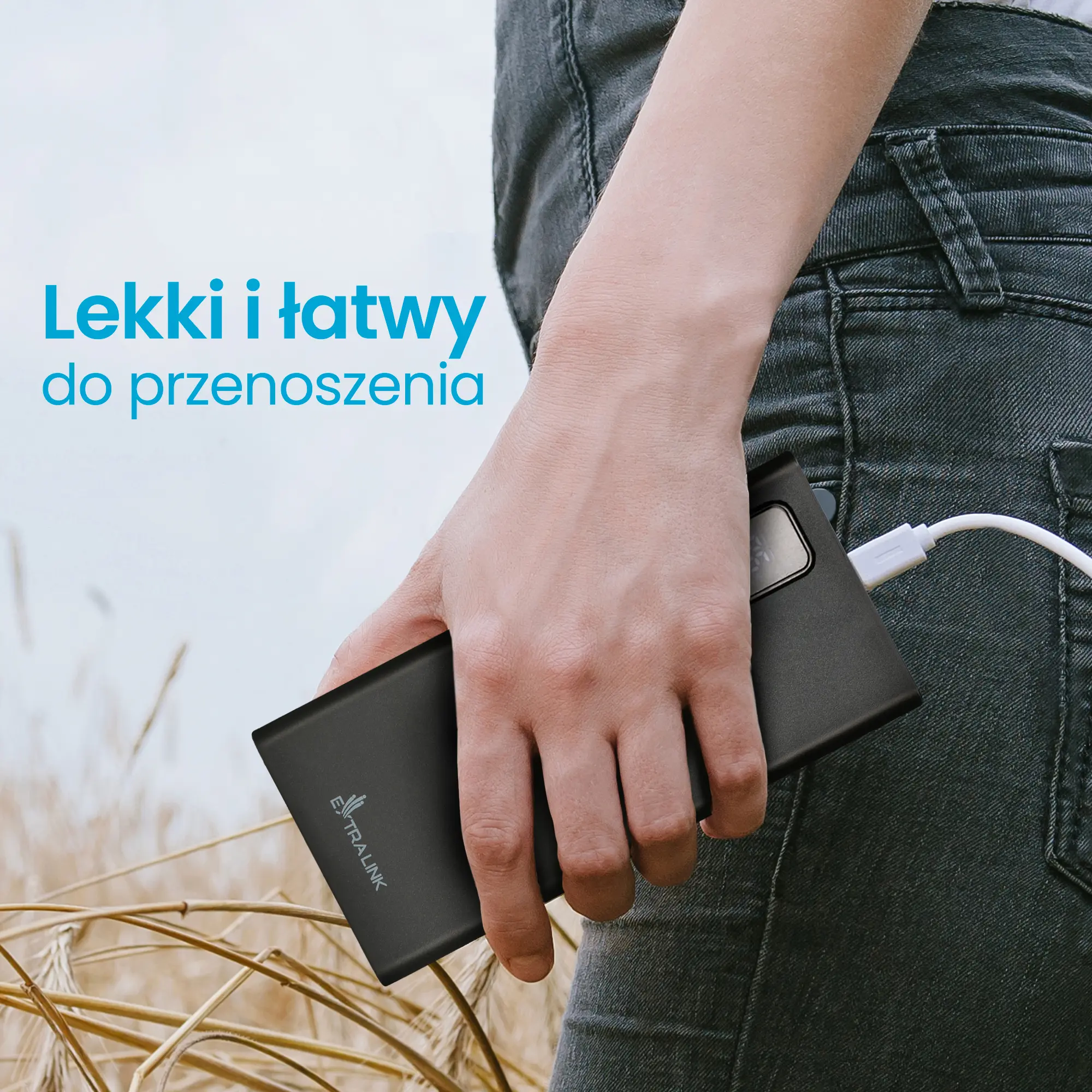 Akumulator litowo-polimerowy w power banku Extralink o wysokiej gęstości to bezpieczeństwo i wydajność na wysokim poziomie. Extralink Power Bank gwarantuje najlepszą w swojej klasie ochronę układów scalonych przy jednoczesnym zwiększeniu wydajności ładowania.