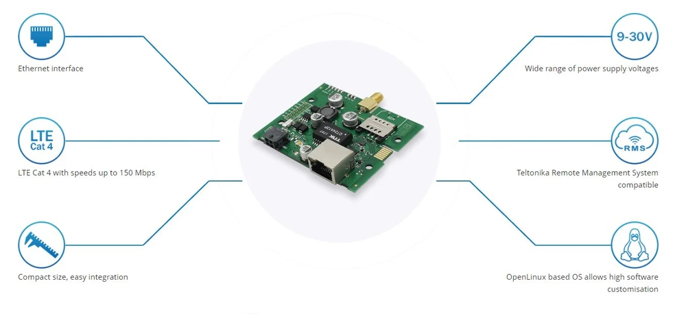 Karta sieciowa LTE Teltonika TRB140 jest małą i szybką bramką przemysłową Ethernet 4 G LTE przeznaczoną do rozwiązań IoT. Dzięki zaawansowanym funkcjom VPN, opcjom bezpieczeństwa i zdalnemu zarządzaniu, TRB140 stanowi doskonałe rozwiązanie do komunikacji LTE za pomocą jednego urządzenia, zwłaszcza w aplikacjach przemysłowych.