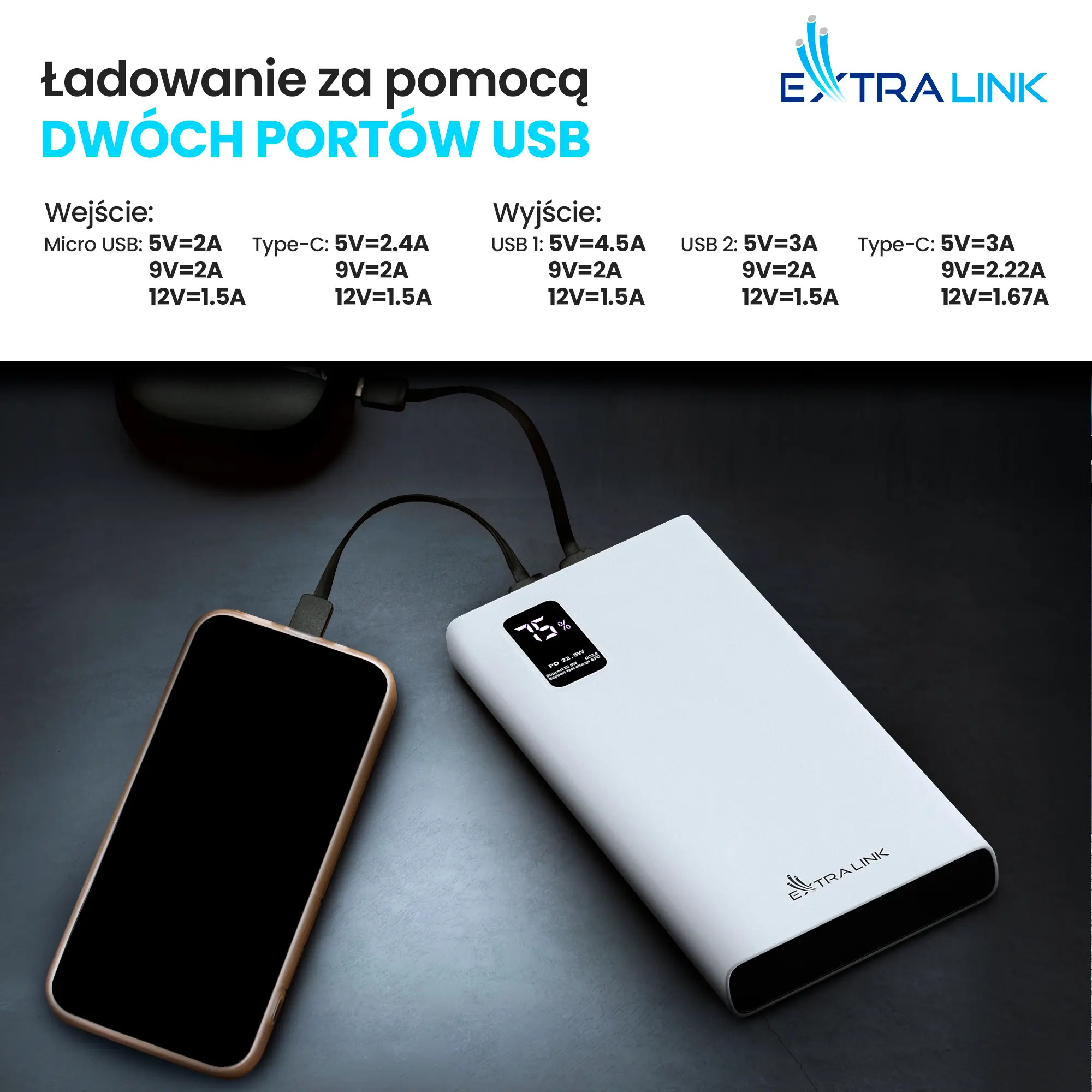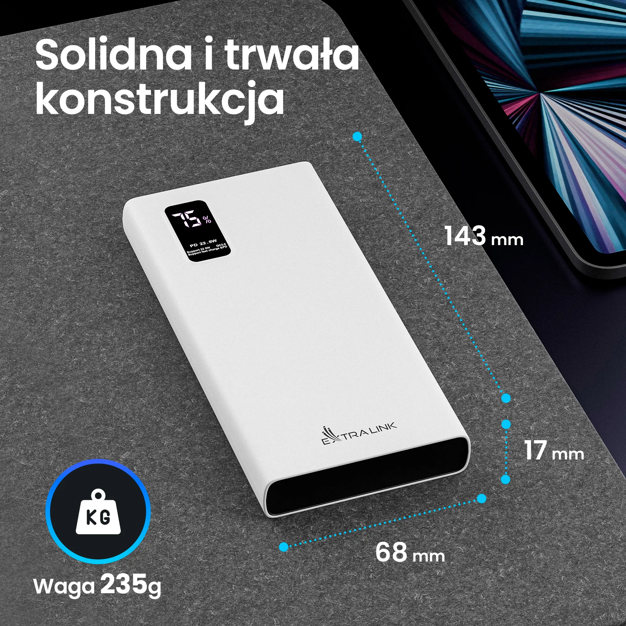 Power bank 10000 mAh 22.5W Fast Charge marki Extralink – szybkie, wydajne ładowanie