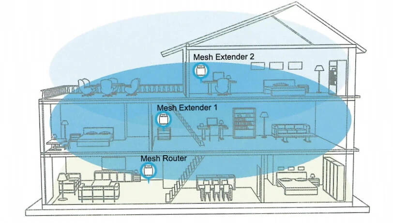 Extralink Dynamite Mesh System to potężny dwuzakresowy system WiFi Mesh, który zapewnia dostęp do Internetu w każdym zakątku mieszkania, bez spadku jakości sygnału, gdy urządzenie końcowe przemieszcza się miedzy urządzeniami Mesh. System Dynamite Mesh jest zbudowany tak, aby urządzenia łączyły się miedzy sobą w obrębie jednej sieci Wi-Fi. Jeśli jeden z satelitów utraci połączenie, pozostałe jednostki automatycznie i bezproblemowo nawiążą ponownie połączenie z Internetem.