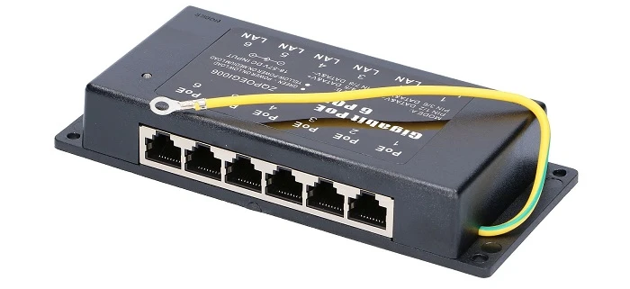 Extralink Poe injector 6 portów gigabit - to urządzenie posiadające 6 portów PoE o przepustowości 10/100/1000 M Ethernet.