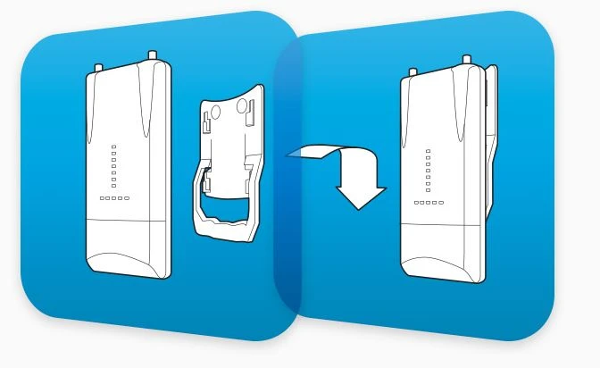 Antena AM-2G16-90 posiada dedykowany uchwyt dla urządzeń RocketM oraz wodoszczelny kabel koncentryczny. Montaż z urządzeniami RocketM jest bardzo prosty i nie wymaga dodatkowych elementów ani narzędzi.