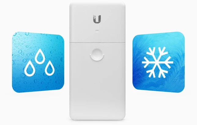 NanoSwitch jest idealny do użytku zarówno wewnątrz, jak i na zewnątrz budynków, ponieważ posiada solidną obudowę odporną na trudne warunki atmosferyczne i utrzymującą się w temperaturach od -30°C do 70°C.