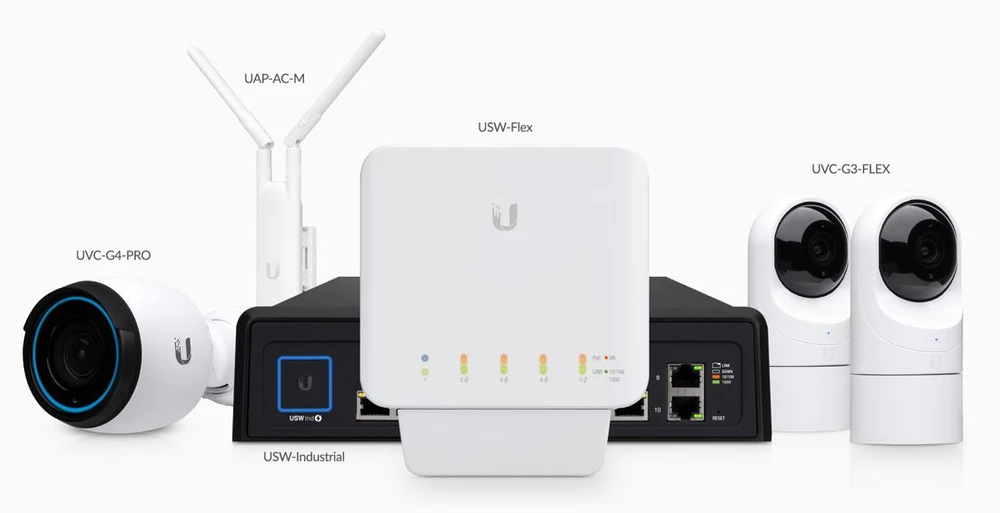 USW-Flex zasila różne produkty, w tym kamerę wideo UniFi G3 Flex, kamerę wideo UniFi G4 Pro oraz punkt dostępowy UniFi AC Mesh AP, które korzystają z 802.3af PoE. USW-Flex może być zasilany za pomocą przełącznika USW-Industrial, który zapewnia 60 W z 802,3bt PoE++.