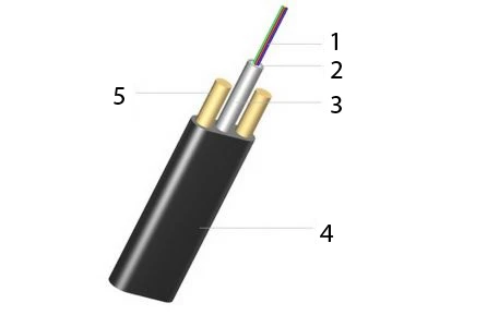 Element wzmacniający stanowią dwa pręty FRP. Kabel o przekroju 10.6 mm x 4.5 mm pokrywa powłoka zewnętrzna z polietylenu.