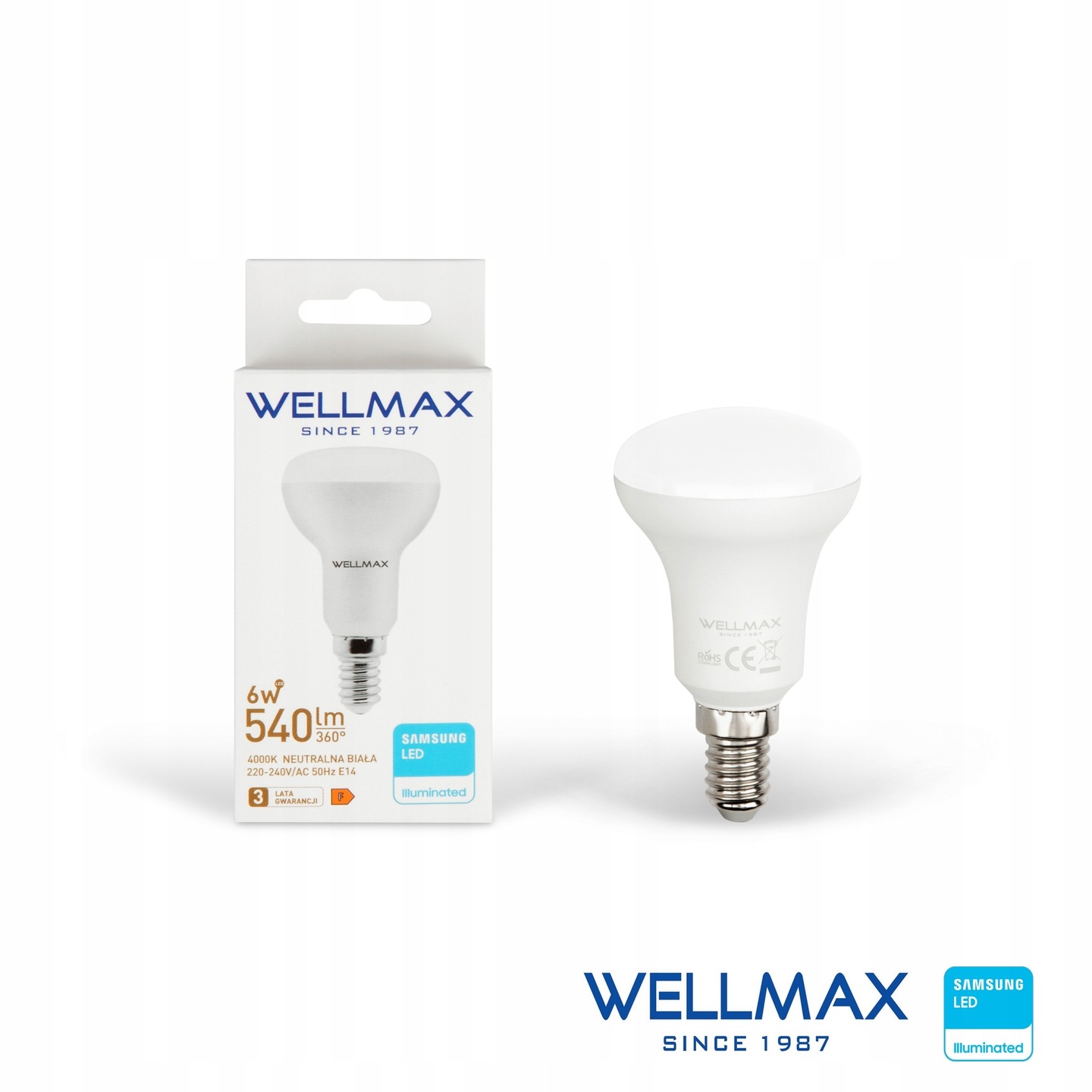 Żarówka WELLMAX LED 6W R50 E14 90lm/W 540 lm Neutralna Biała 4000K SAMSUNG