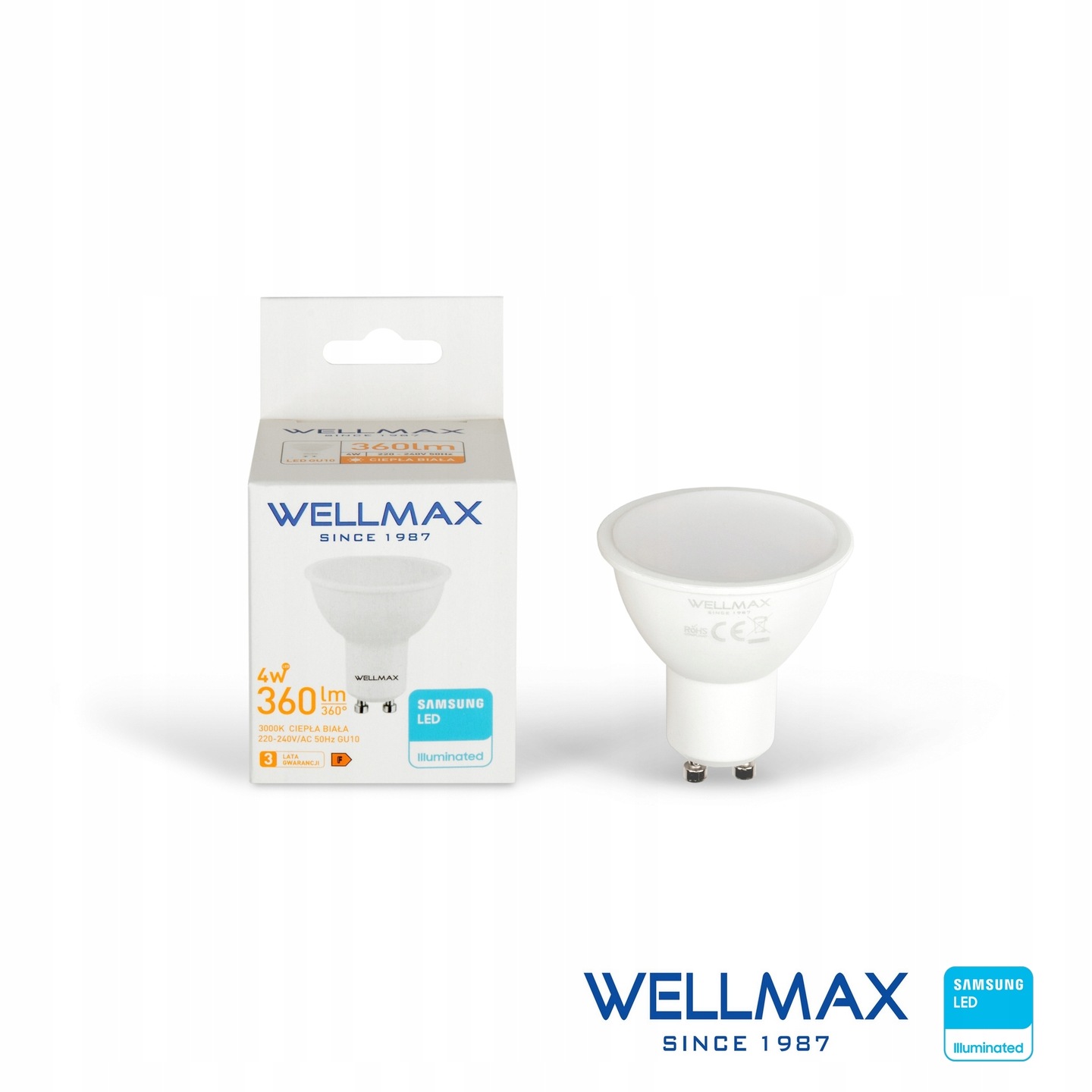 Żarówka WELLMAX LED 4W GU10 90lm/W 360lm Ciepła Biała 3000K SAMSUNG