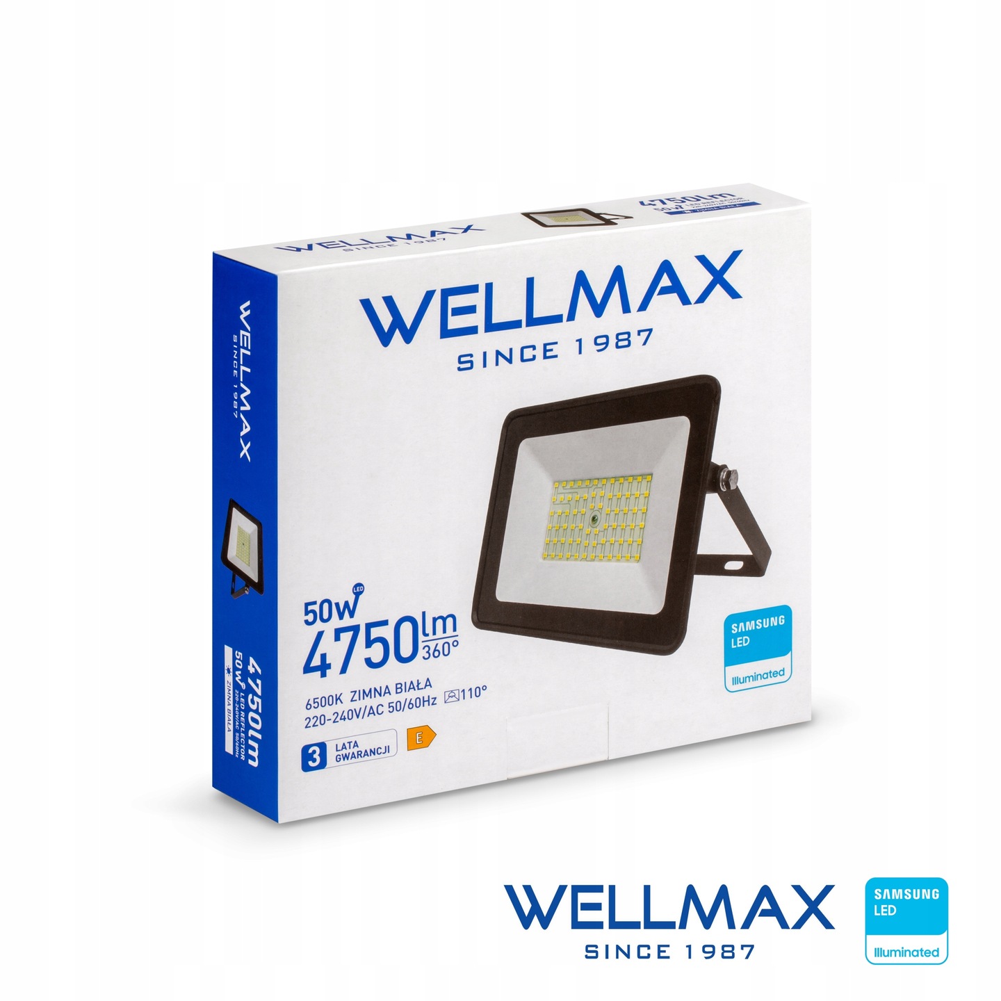 Naświetlacz WELLMAX LED SAMSUNG 50W 4750lm Barwa Zimna Biała 6500K
