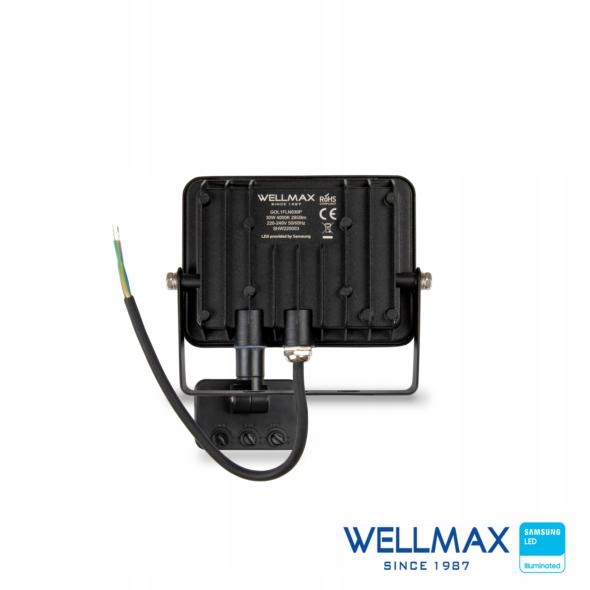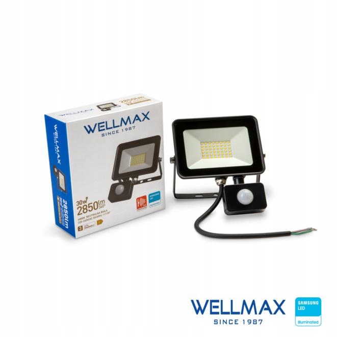 Naświetlacz WELLMAX LED SAMSUNG 30W 2850lm PIR Barwa Neutralna Biała 4000K z Czujnikiem Ruchu i Światła