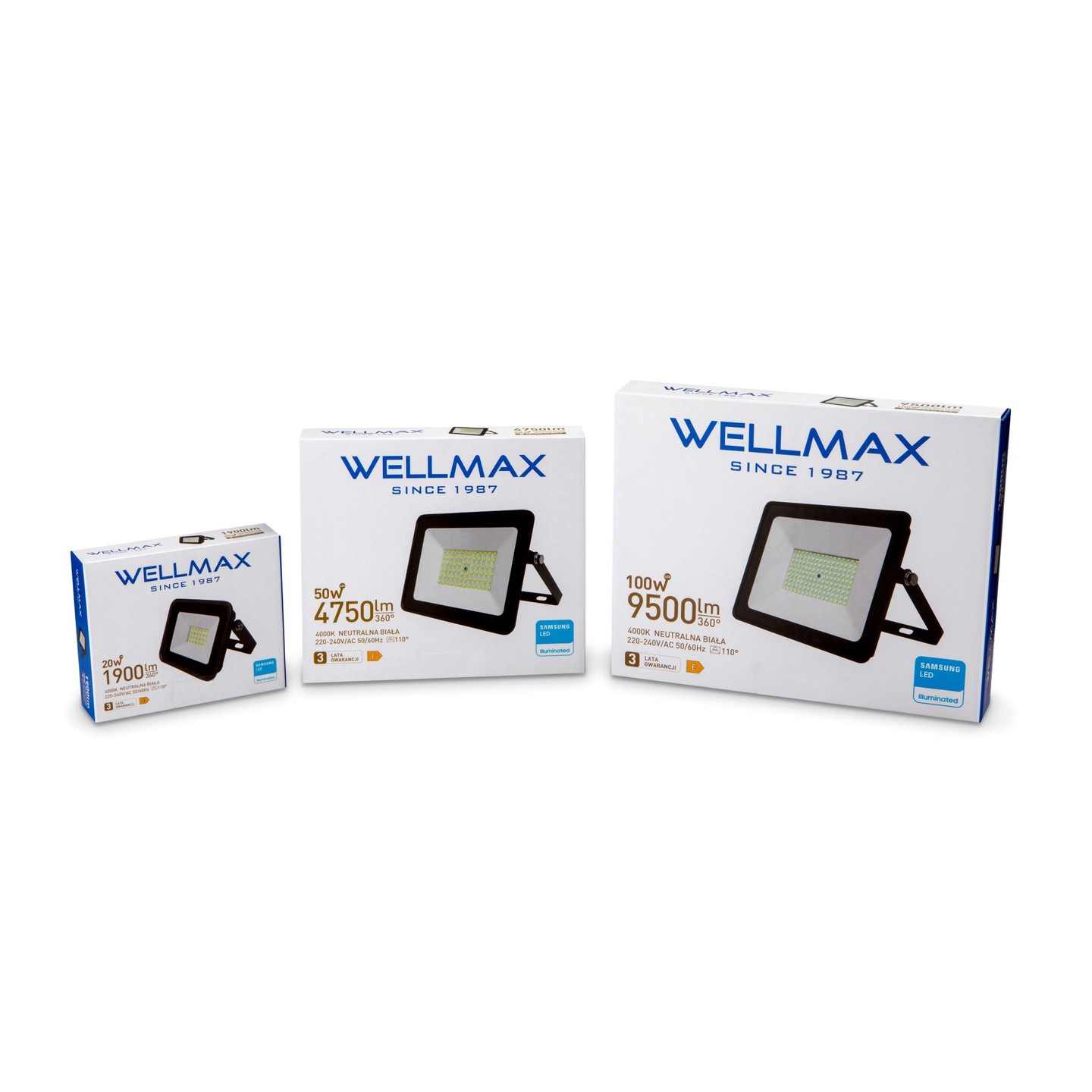 Wszystkie produkty WELLMAX wyprodukowane na podzespołach firmy SAMSUNG posiadają 3 letnią gwarancję i mogą poszczycić się czasem świecenia 25 000 godzin!