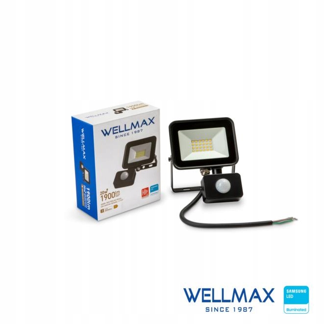 Naświetlacz WELLMAX LED SAMSUNG 20W 1900lm PIR Barwa Neutralna Biała 4000K z Czujnikiem Ruchu i Światła
