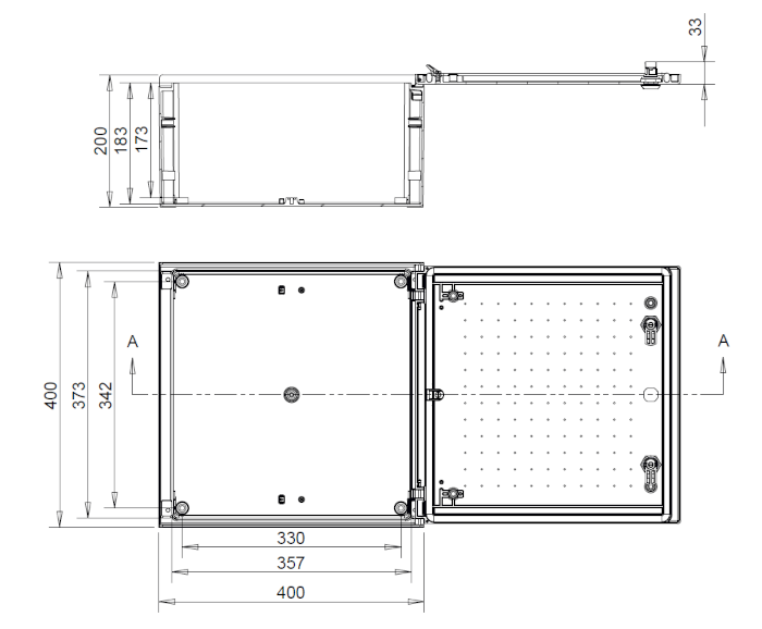 - Od góry obudowa posiada wysunięty daszek który zabezpiecza przed wnikaniem wody kiedy drzwi są otwarte. Chroni on również uszczelkę przed długotrwałym kontaktem z cieczami co mogłoby mieć negatywny wpływ na właściwości poliuretanowej uszczelki przy spadkach temperatury.