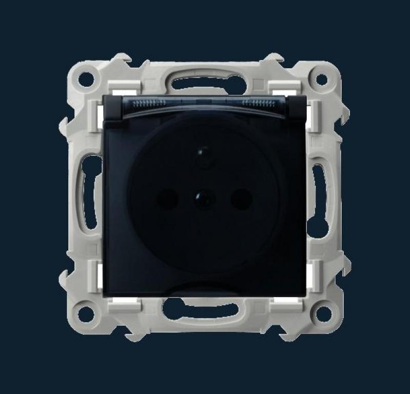Kolejną nowością zastosowaną w gniazdach pojedycznych z uziemieniem i gniazdach specjalistycznych jest montaż pokrywy zewnętrznej za pomocą precyzyjnych zaczepów "na klik".