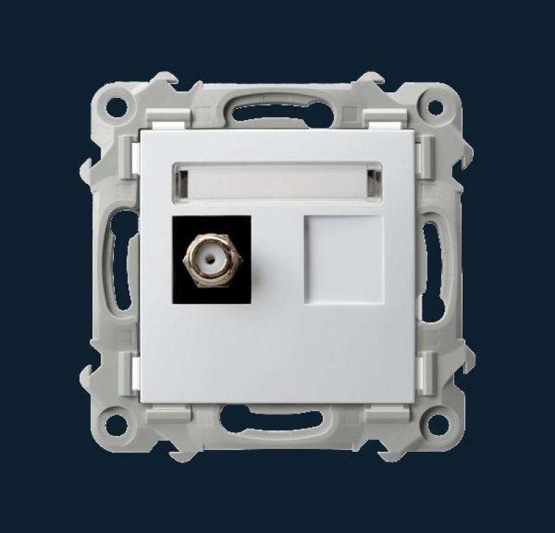 Kolejną nowością zastosowaną w gniazdach pojedycznych z uziemieniem i gniazdach specjalistycznych jest montaż pokrywy zewnętrznej za pomocą precyzyjnych zaczepów "na klik".