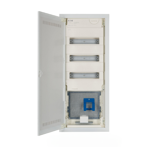 Rozdzielnica modułowa marki Eaton to zaawansowany system dystrybucji zasilania, który umożliwia zabezpieczenie, kontrolę i zarządzanie obwodami elektrycznymi w budynkach. Jest przeznaczona do rozmieszczania wyłączników, bezpieczników i innych komponentów w jednym ergonomicznym korpusie.