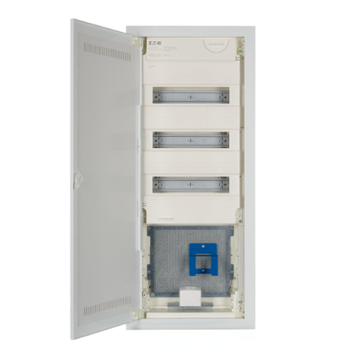 Rozdzielnica modułowa marki Eaton to zaawansowany system dystrybucji zasilania, który umożliwia zabezpieczenie, kontrolę i zarządzanie obwodami elektrycznymi w budynkach. Jest przeznaczona do rozmieszczania wyłączników, bezpieczników i innych komponentów w jednym ergonomicznym korpusie.